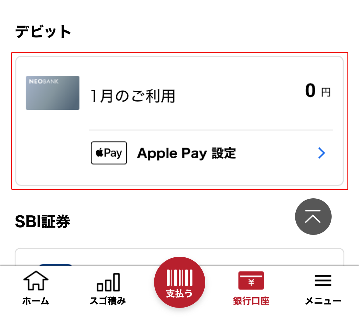 2. デビットカードをタップ