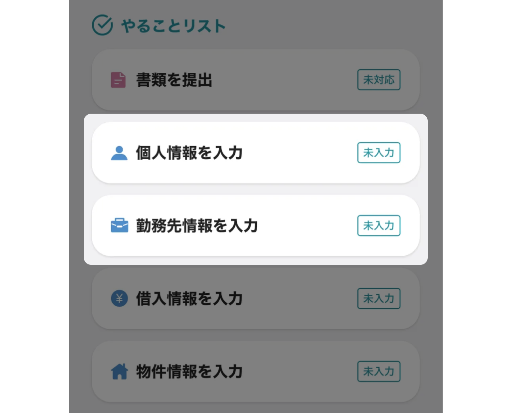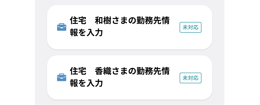 やることリストに2人分の「勤務先情報を入力」ボタンが表示されます。