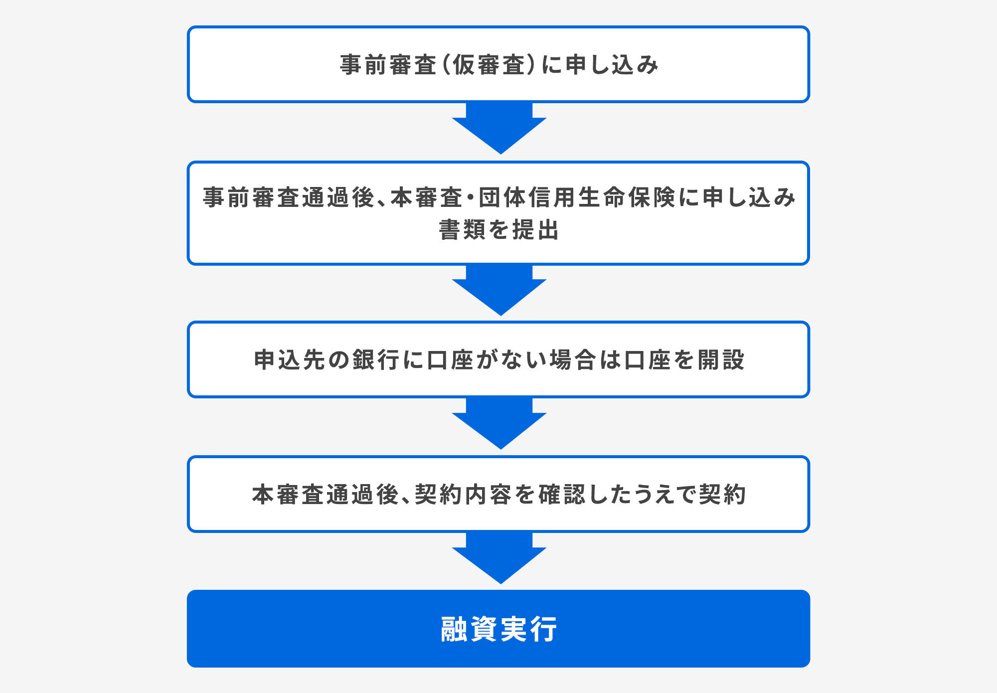 ネット銀行での申し込みから融資実行までの手順は、上記のとおりです。審査には、事前審査と本審査があり、それぞれに一定の時間がかかります。そのため、いつまでに手続きを完了しなければならないか事前に確認し、余裕を持って早めに手続きを進めておきましょう。