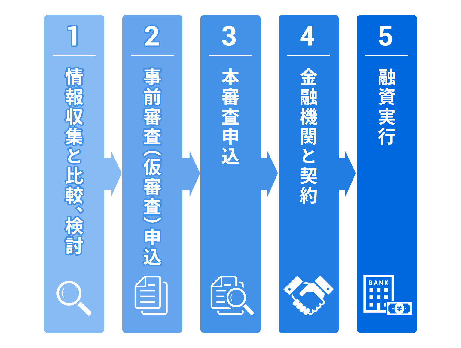 住宅ローンの借り入れまでの流れは、上図のとおりです。