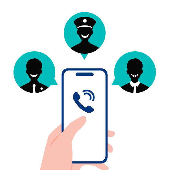 信憑性を高める警察官・銀行員・上司等の役が電話を代わる代わるかけてきて、組織的な対応を装い、信じ込ませようとします。